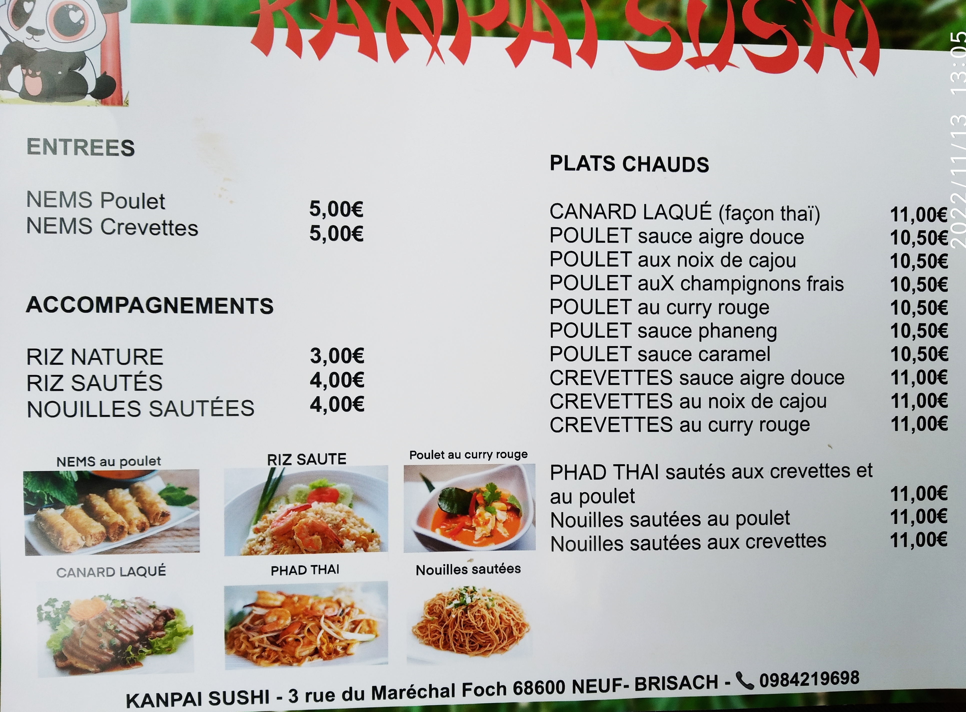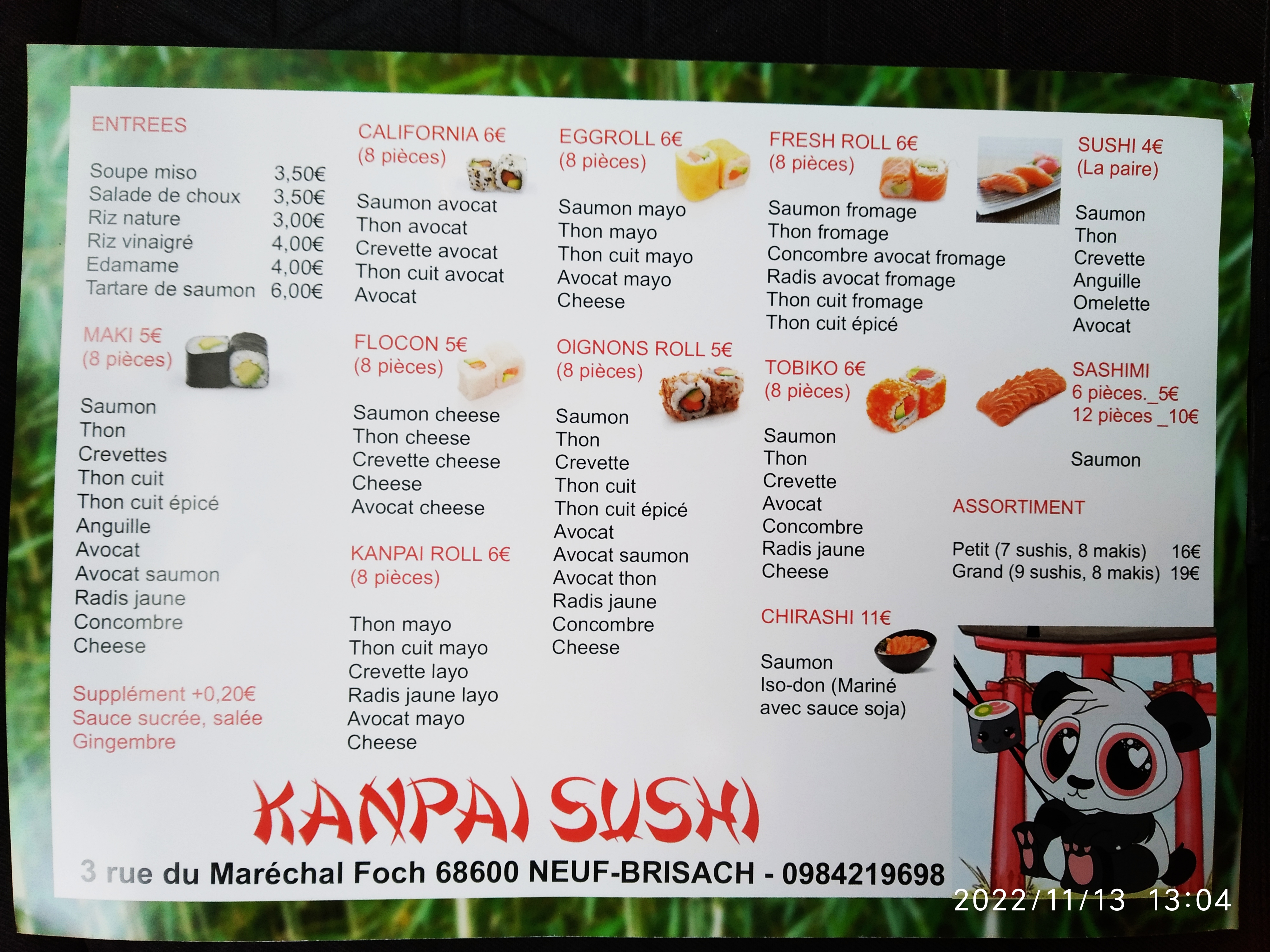 Voici toutes les informations sur le Sushi à emporter Kanpai sushi qui ce trouve au 3bis Rue Maréchal Foch, 68600 Neuf-Brisach (68). Sur cette fiche vous trouverez les photos, l'adresse, les horaires d'ouverture, le numero de téléphone et les avis clients.Vous pouvez églement rédiger un avis si vous le souhaitez en bas de page.