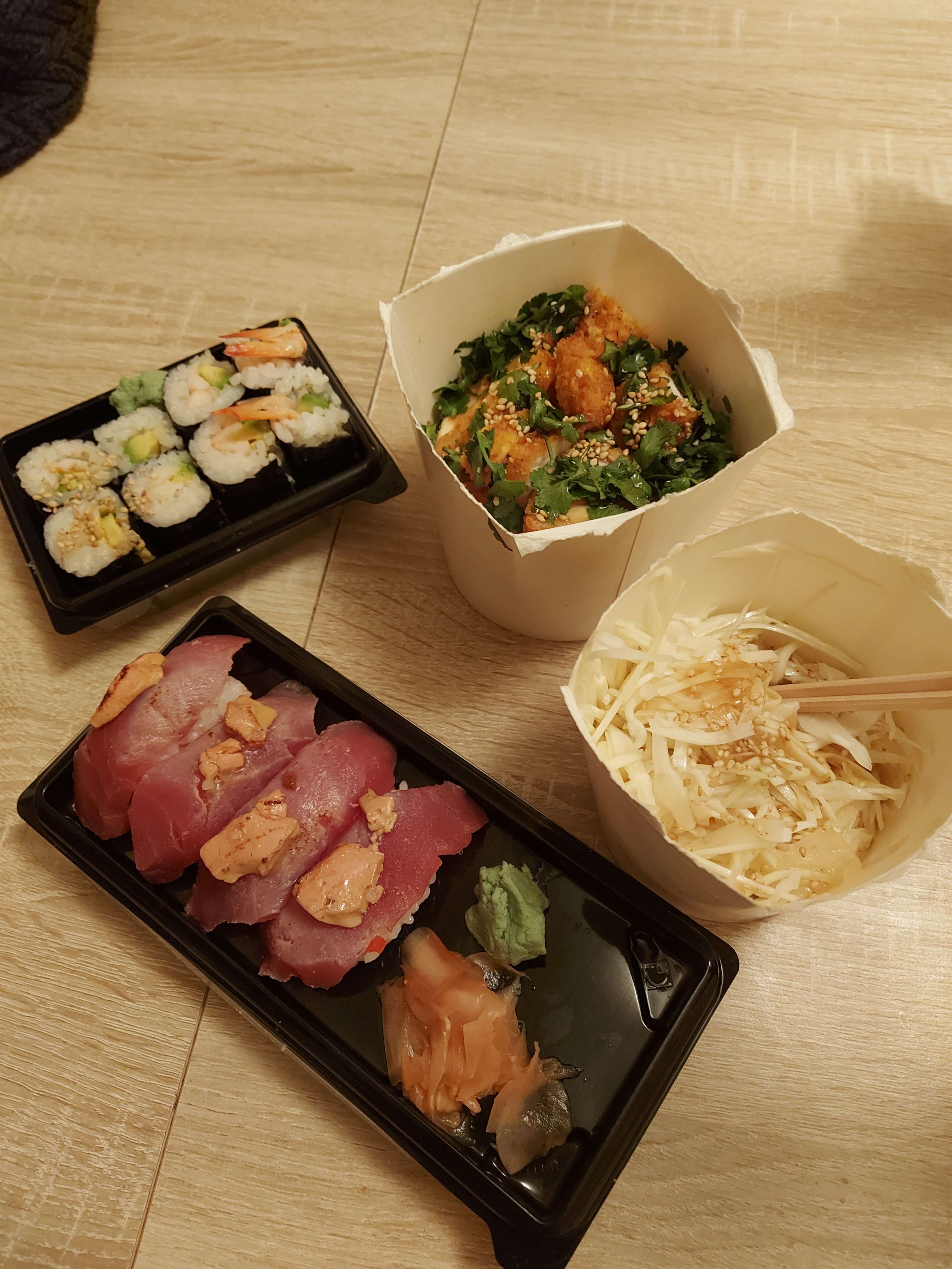 Assez déçus. Nous étions venu une première fois, et c’était super. Là, beaucoup moins. Riz vinaigré et choux servi dans des barquettes en plastique style frites au stade de foot. Bof. Le riz vinaigré n’est vraiment pas bon. Ce n’est d’ailleurs pas un riz vinaigré. Le chou ne datait pas d’aujourd’hui, j’en suis quasiment sur. (Sur le dessus, le choux avait seché) Morceaux de saumon trop épais, visuellement ce n’est pas jolie, et surtout écœurant. Vos sushis ne sont pas égaux entre eux, ni en forme, ni en quantité. Les sachets de sauce soja, ce n’est pas super jolie non plus. J’espère que vous prendrez ces remarques en compte, et que je ne me ferai pas allumer par votre réponse comme j’ai pu le voir sur certains commentaires. Nous adorons les sushis, nous en mangeons très régulièrement dans différentes villes. Et c’est la première fois que j’ai pas envie de terminer. Que s’est-il passé depuis la dernière fois ? (Commande à emporter)