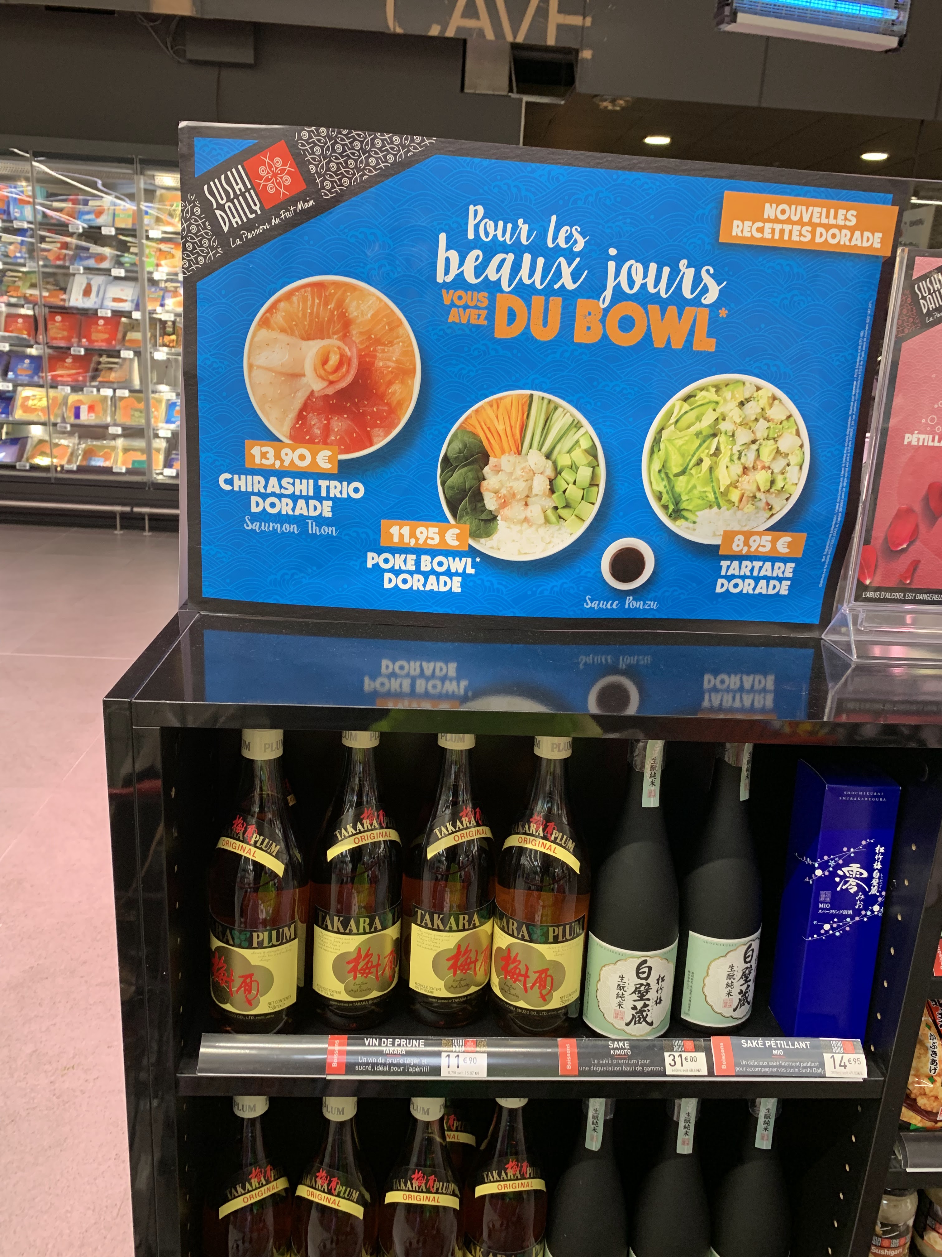 Bonjour, VRAIMENT trop trop cher pour quelque grammes de riz et des lamelles de saumon, plus de 50 euros au kilo écrit très petit pour éviter de se rendre compte que c'est plus cher que le foie gras, pour les brochettes sorties du congélateur la liste des ingrédients est tellement longue qu'il faut une bonne paire de lunettes et beaucoup de patience et le poulet , il vient d'où ????